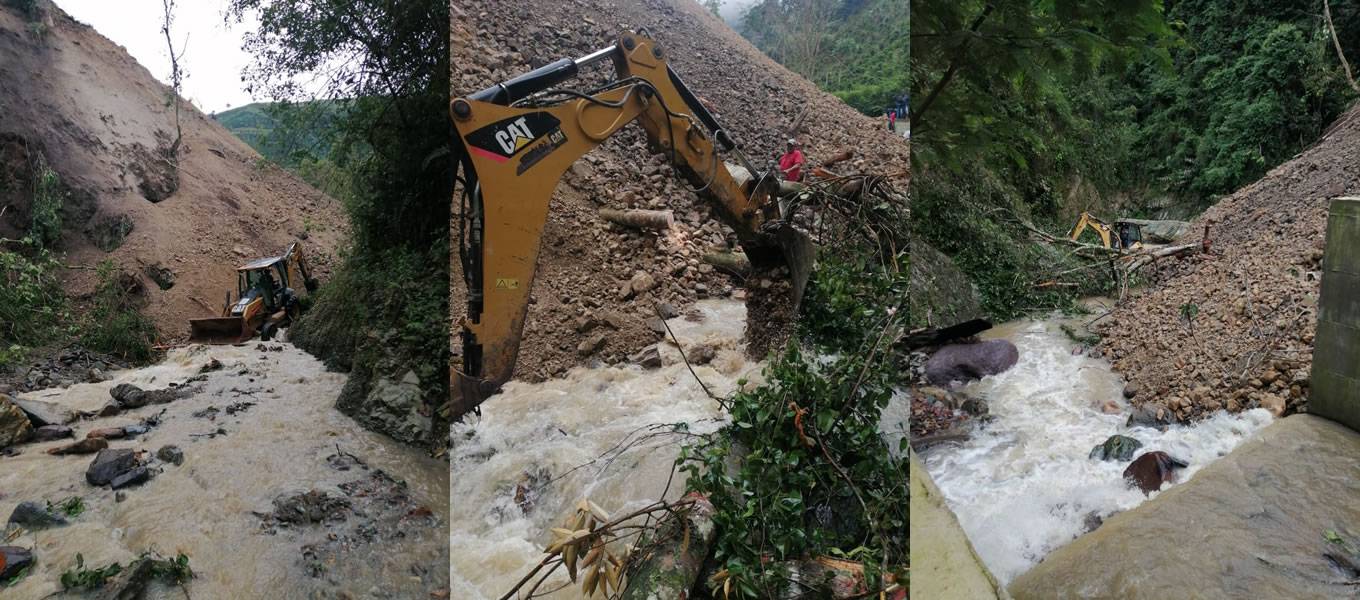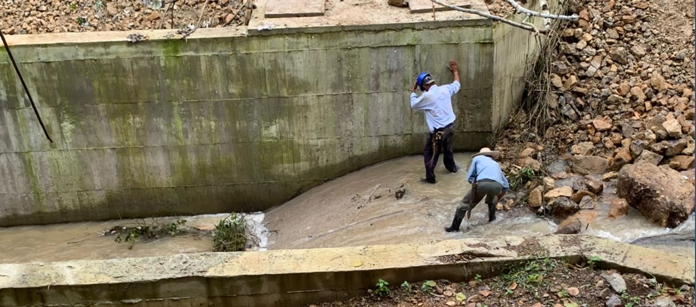 Al sitio llegaron 5 operarios de Aguas del Huila y 4 operarios contratistas de obra de la administraci?n municipal con retroexcavadora y volqueta, con el fin de hacer limpieza, retirar el material del talud y subsanar el taponamiento en uno de los vertederos rectangulares que se usan para la medici?n de caudal, de tal manera que, luego de varias horas de trabajo, el mi?rcoles 10 de marzo en horas de la tarde, se pudo restablecer completamente el servicio de agua potable en todo el municipio de Tarqui.