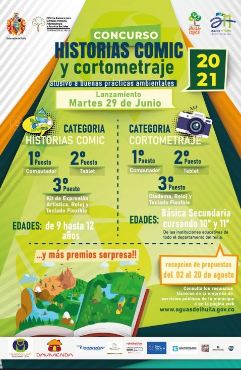 La Gobernaci?n del Huila y Aguas del Huila invitan al concurso de Historias C?mic y Cortometraje ?buenas pr?cticas ambientales? alusivos a las buenas pr?cticas ambientales 2021.