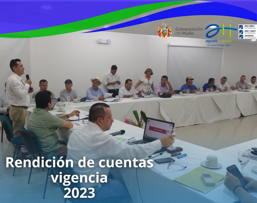 Aguas del Huila en cabeza de su Gerente, el doctor Genaro Lozada Mendieta realiz? rendici?n de cuentas de la vigencia 2023, resaltando logros de importantes obras en materia de agua potable y saneamiento b?sico en los diferentes municipios del departamento.